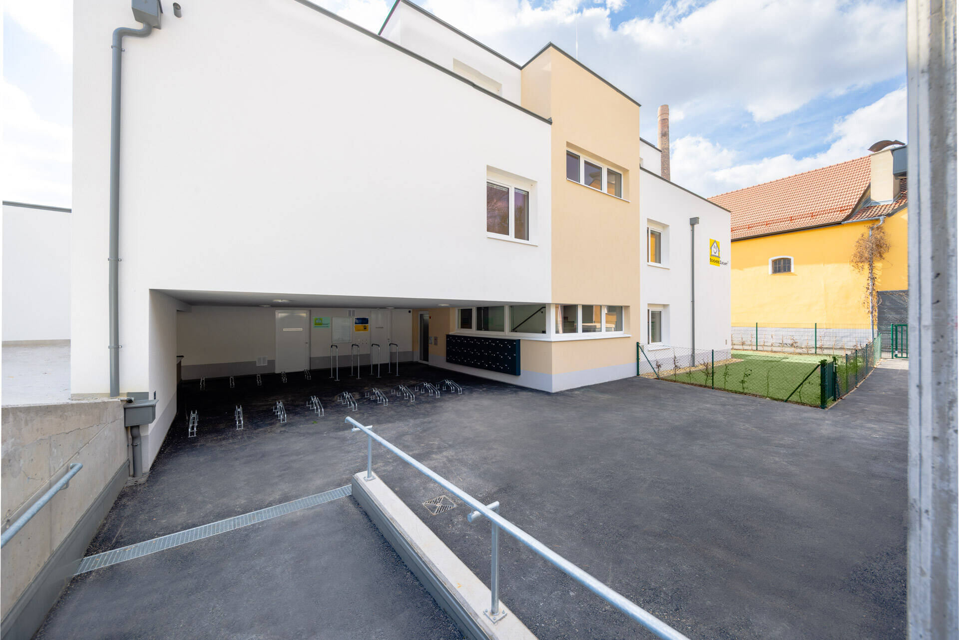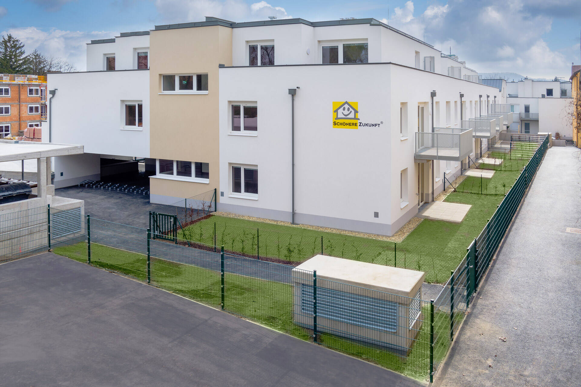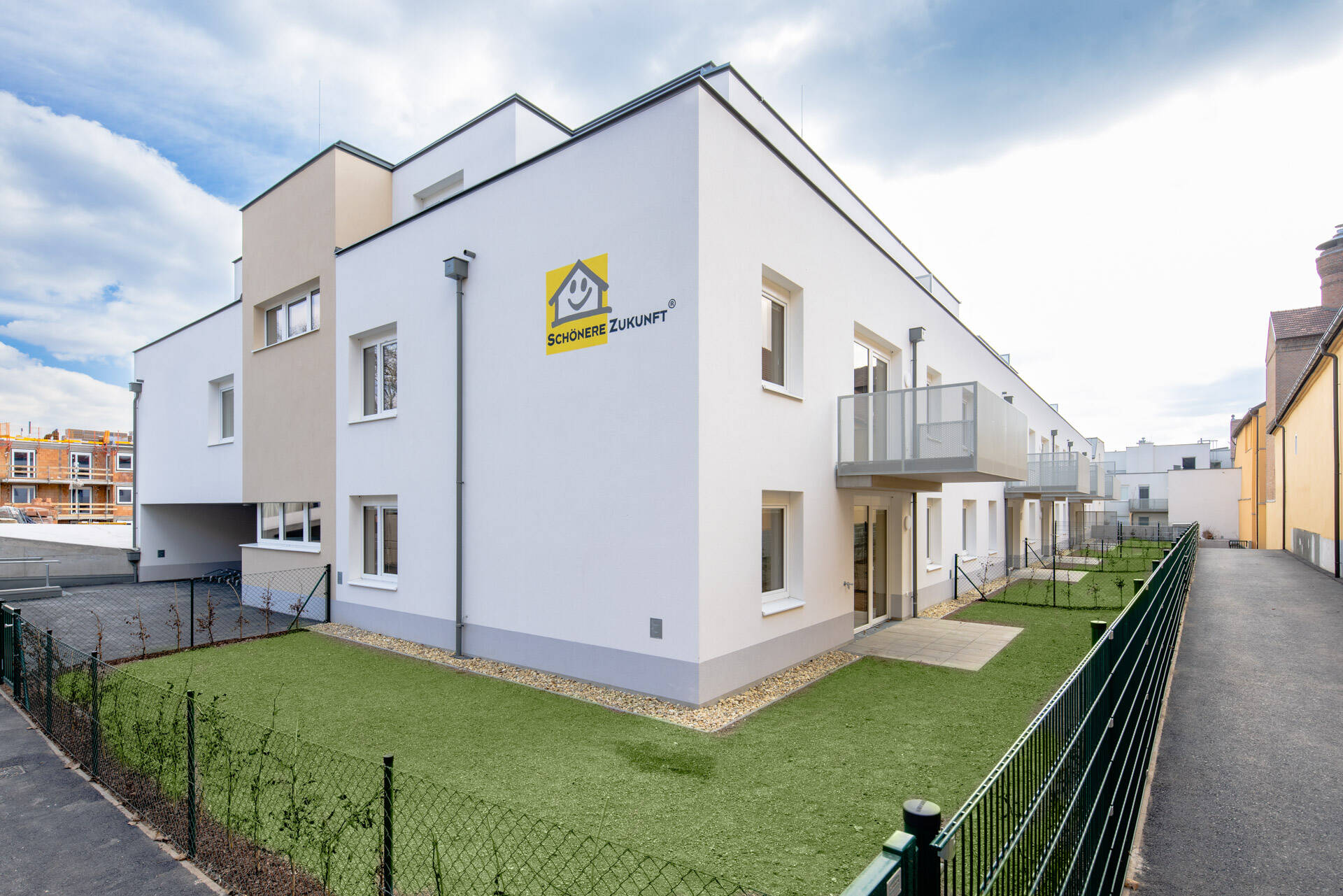Errichtet wurden insgesamt 27 geförderte Wohneinheiten mit 2 bis 4 Zimmern und Größen zwischen ca. 50m² und 80m².Jede Wohnung verfügt über eine Freifläche wie Eigengarten + Gartenterrasse, Balkon oder Dachterrasse. Im Kellergeschoss ist jeder Wohnung ein Kellerabteil mit zusätzlichem Stauraum zugeteilt. Von den 54 Garagenstellplätzen werden jeder Wohneinheit zwei Stellplätze zugeteilt. In Zugangsnähe werden 27 überdachte Fahrradstellplätze errichtet. Die Wohnhausanlage besteht aus einem Kellergeschoss, Erdgeschoss und 2 Stockwerken, wobei alle Etagen über einen Lift erreichbar sind. Die innere und äußere Barrierefreiheit der Wohnhausanlage ist gegeben, sämtliche Wohnungen sind Barrierefrei erreichbar.