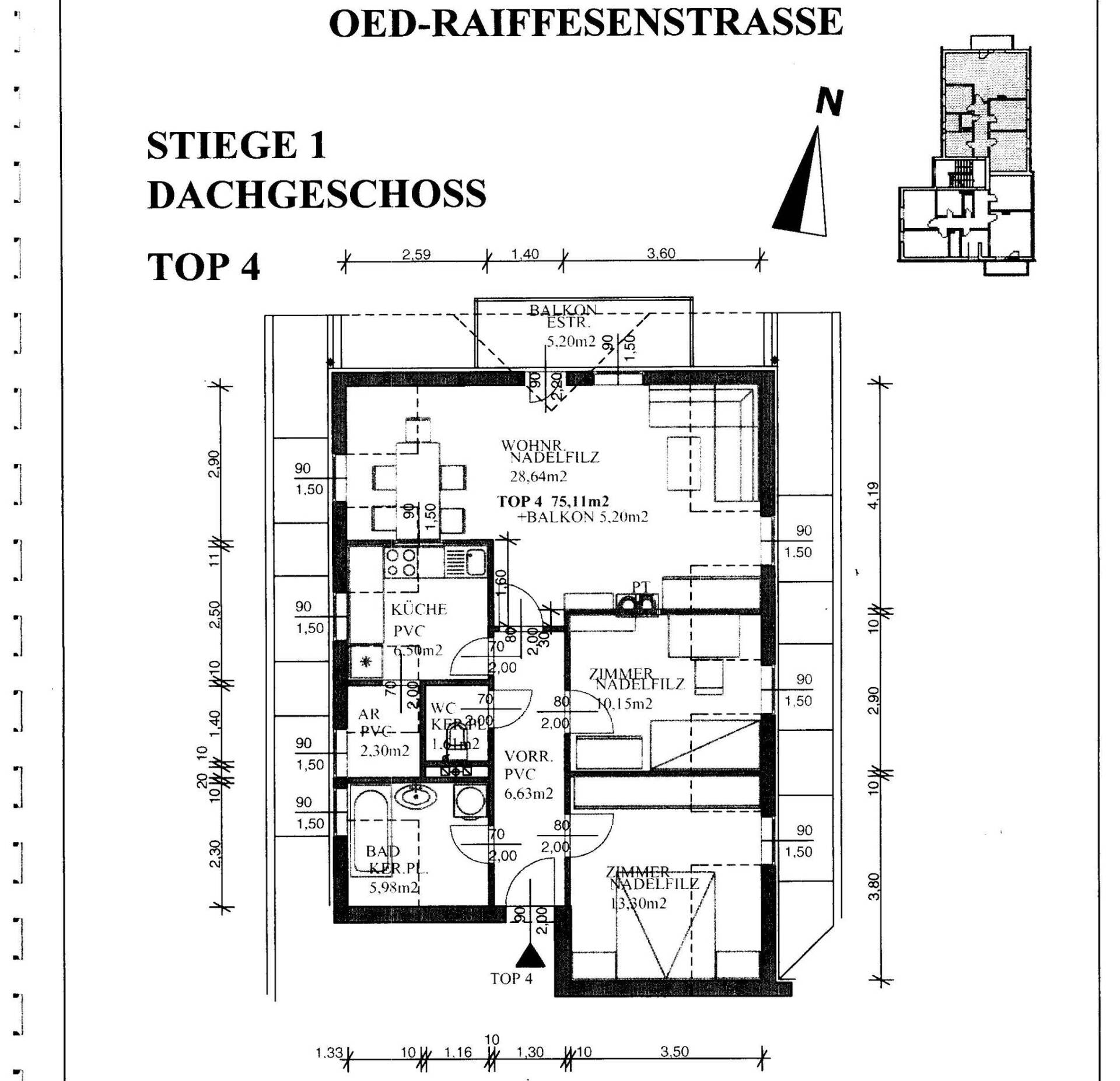 Die 3-Zimmerwohnung Befindet sich im Dachgeschoss. Sie bietet eine Nutzfläche von 75,11 m² und verfügt über einen 5,20 m² großen, nach Norden ausgerichteten Balkon. Der Wohnung sind ein Kellerabteil sowie ein Garagenstellplatz zugeteilt. Zudem stehen ein gemeinschaftlicher Kinderwagen- und Fahrradabstellraum zur Verfügung.