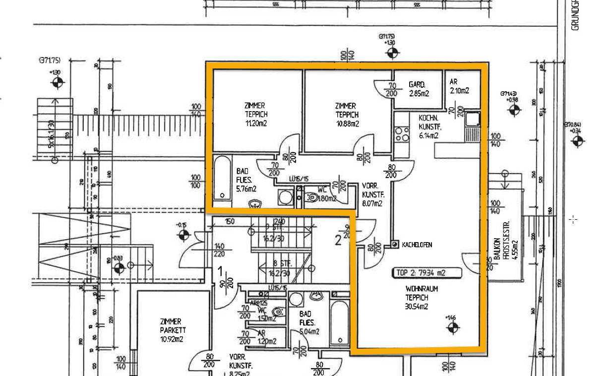 Die Wohnung besteht aus 3 Zimmern auf einer Wohnfläche von ca. 79 m². Sie verfügt über einen ca. 5 m² großen Balkon. Ein Kelleabteil sowie ein Garagenstellplatz sind der Wohnung zugeteilt.