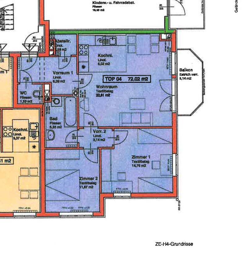 Die 3-Zimmerwohnung hat eine Wohnfläche von 71,92m² und verfügt über einen 5,14m² großen Balkon. Jede Wohnung verfügt über einen Kellerabteil. Ein Kinderwagen- und Fahrradraum, sowie ein Kinderspielplatz stehen allen Mietern zur freien zur Verfügung.