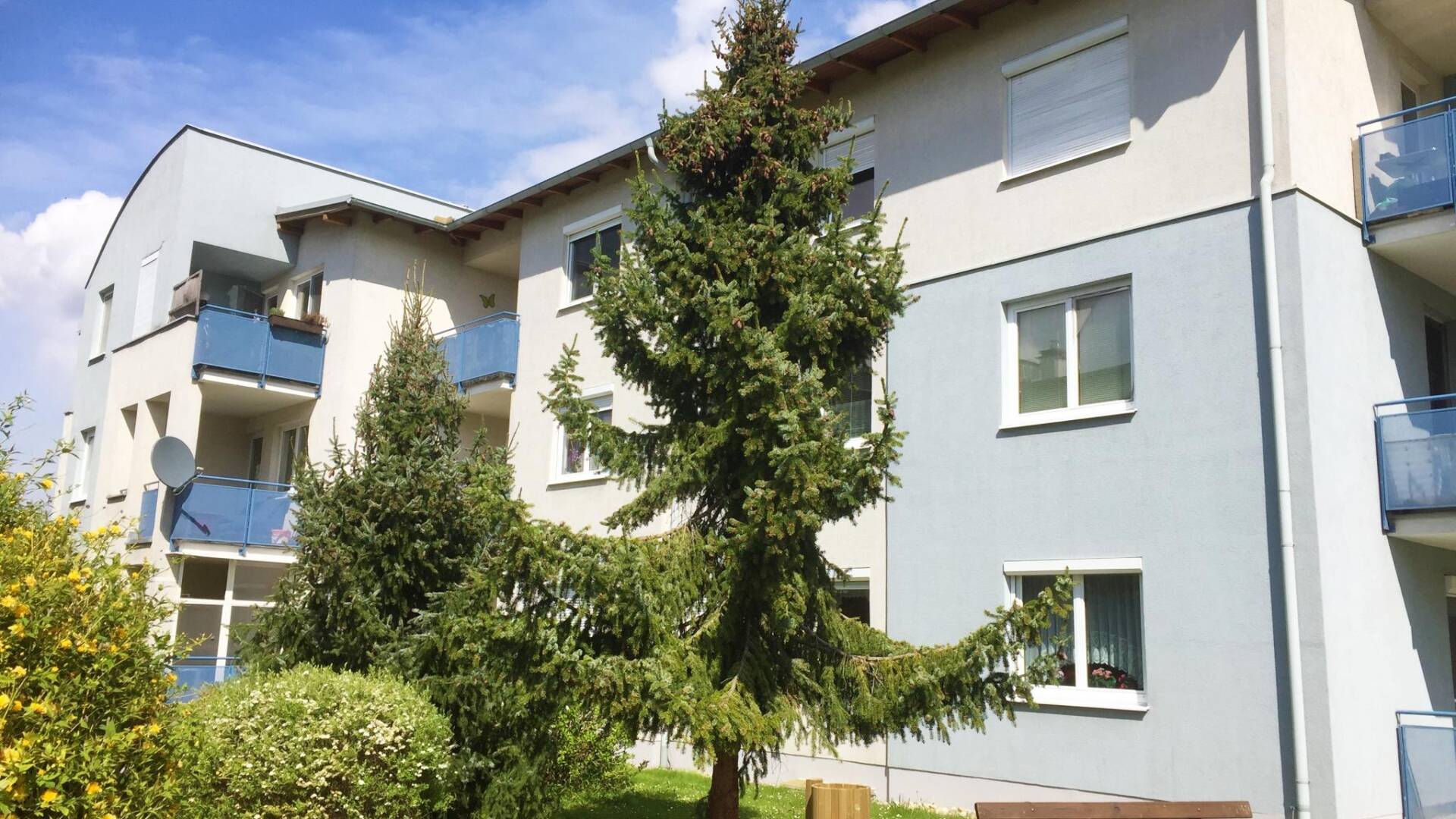 Die Wohnhausanlage besteht aus 4 Wohngebäuden, mit je 3 Stockwerken und insgesamt 53 Wohnungen.