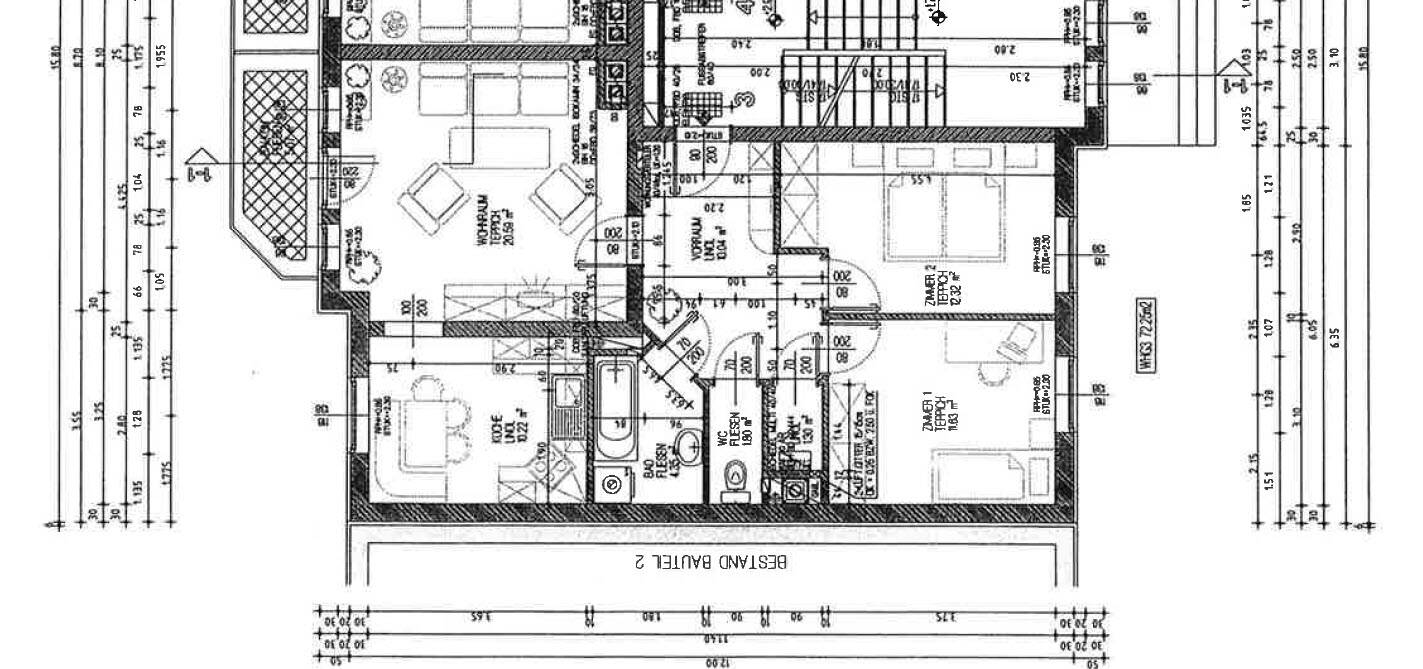 12 geförderte Mietwohnungen in Schrems, erbaut 2001, aufgeteilt auf Erdgeschoss, Obergeschoss und Dachgeschoss, jeweils mit Kellerabteil und KFZ-Stellplatz.
