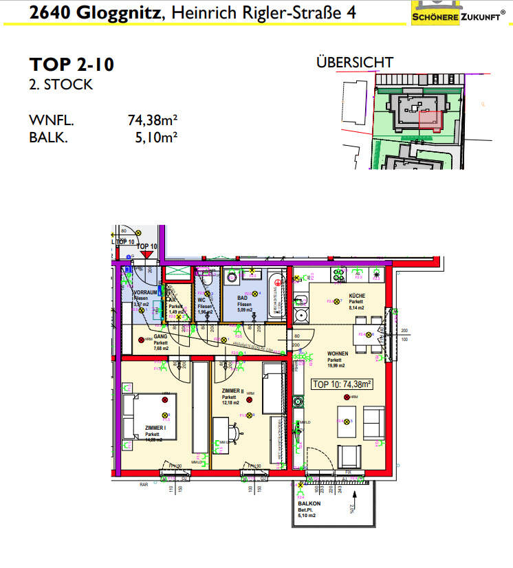 | Monatl. Kosten inkl. USt Miete inkl. Betriebskosten, exkl. Heizung und Strom | € 655 |