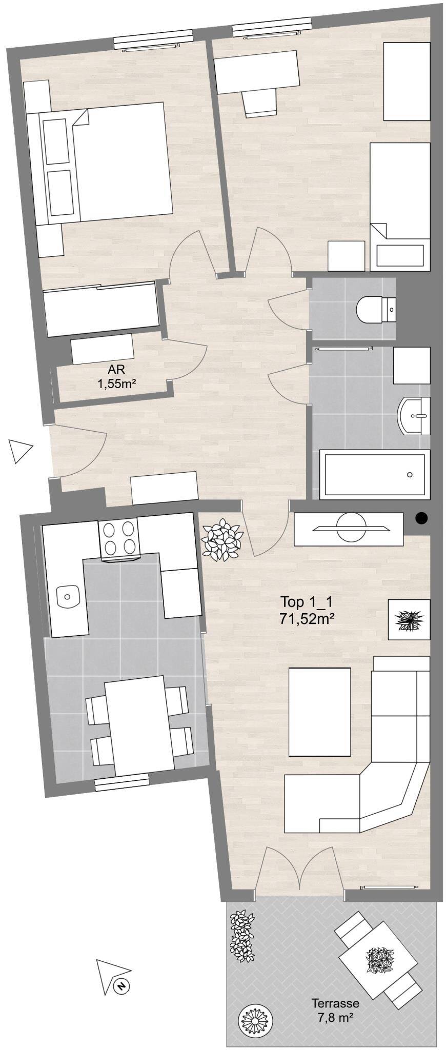 | Monatl. Kosten inkl. USt Miete inkl. Betriebskosten, exkl. Heizung und Strom | € 769 |