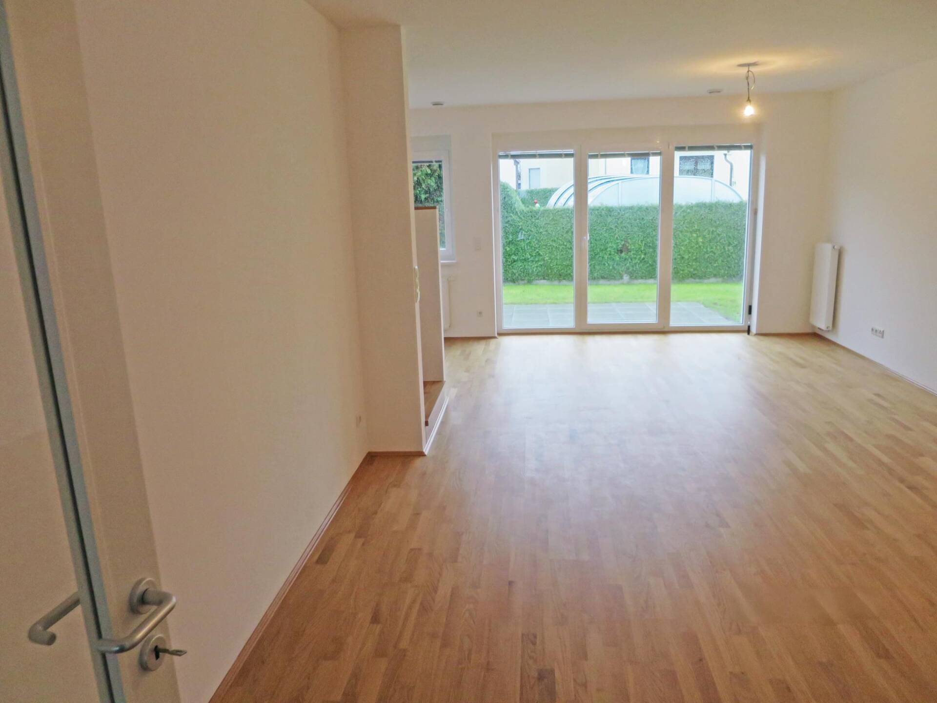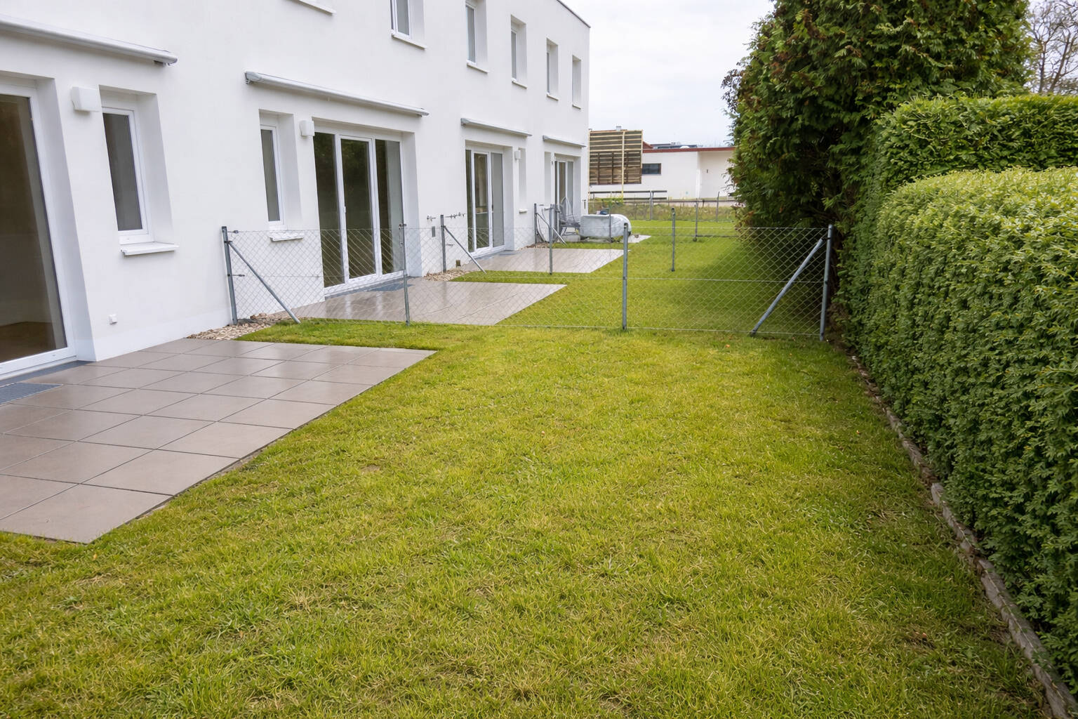 Das ca. 101 m² große Reihenhaus besteht aus 4 Zimmern, verteilt auf Erd- und Obergeschoss. Es verfügt über einen ca. 64 m² großen Garten mit einer ca. 10 m² großen Terrasse. Genügend Stauraum sowie einen direkten Zugang zur Tiefgarage bietet das geräumige Kellergeschoss. Dem Reihenhaus sind 2 Garagen-Stellplätze zugeteilt.