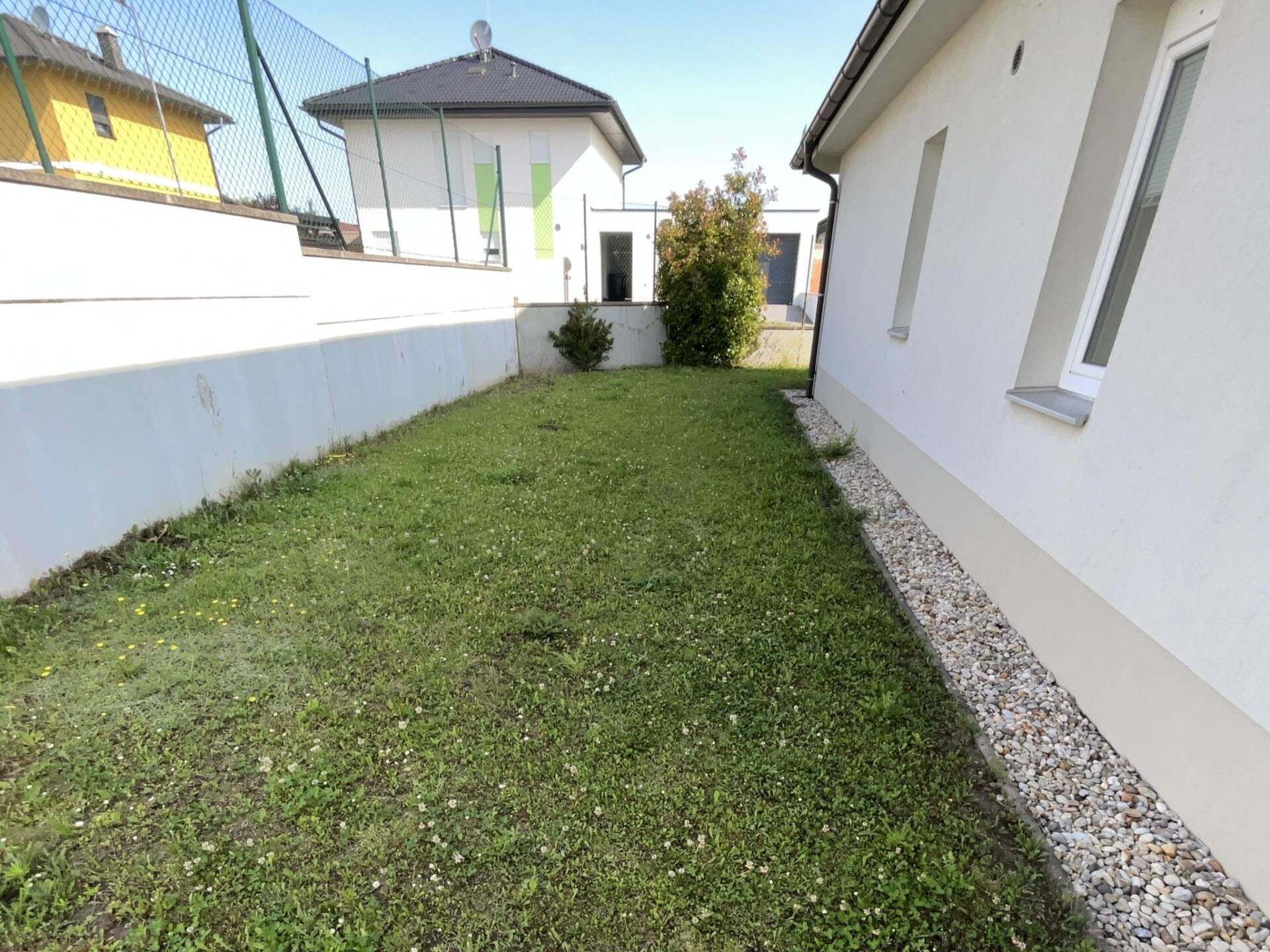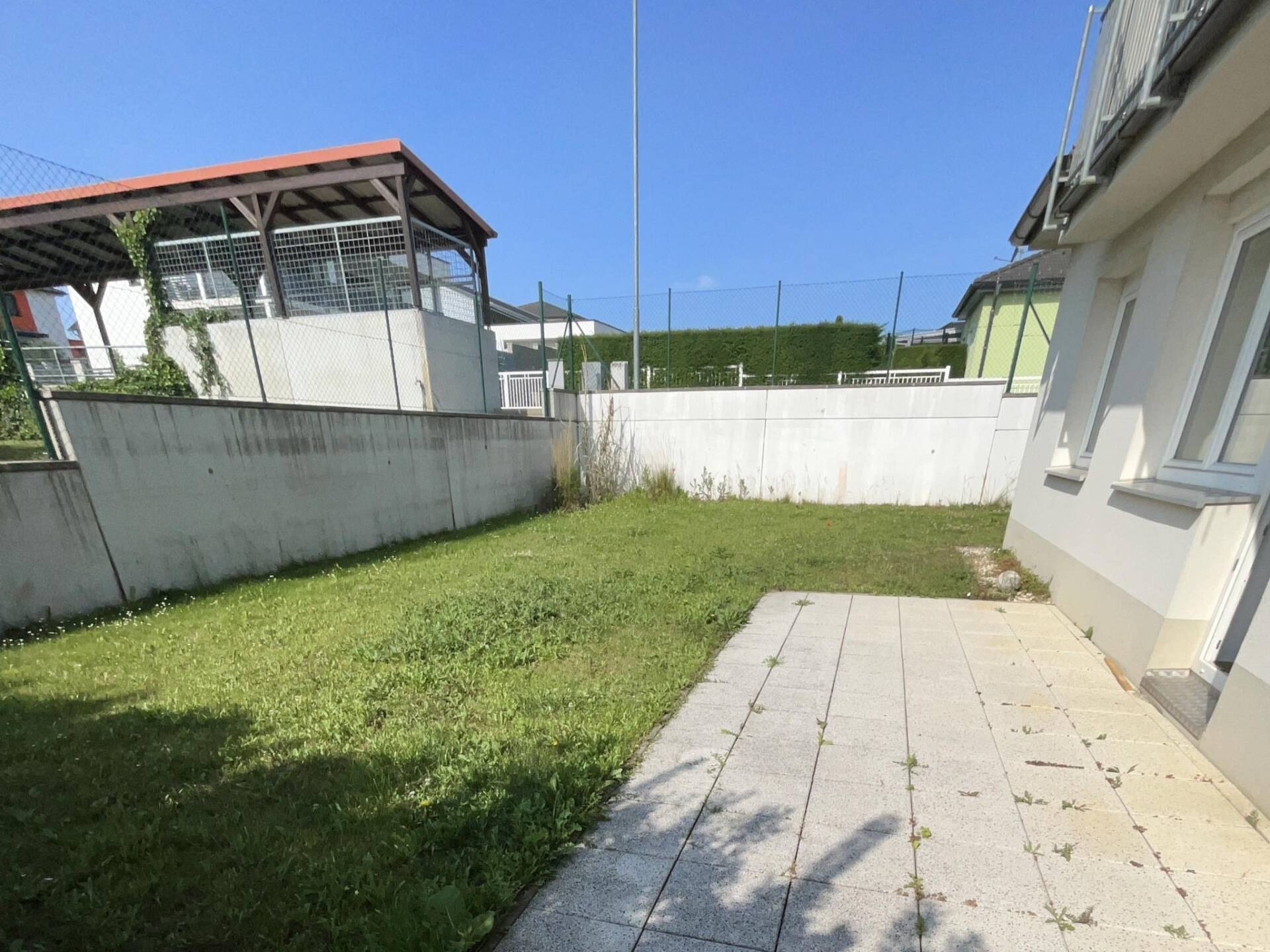 Die 4-Zimmerwohnung hat eine Wohnfläche von ca. 93 m² und verfügt über eine ca. 23 m² große Terrasse und einen 190 m² großen Garten. Die Wohnung verfügt über ein Kellerabteil im Kellergeschoss sowie 2 KFZ-Stellplätze im Freien. Ein Kinderwagen- und Fahrradraum sowie ein Wasch- und Trockenraum stehen allen Mietern zur freien zur Verfügung. Die Wohneinheit wird über eine Zentrale Pelletsanlage mit Wärme Versorgt.