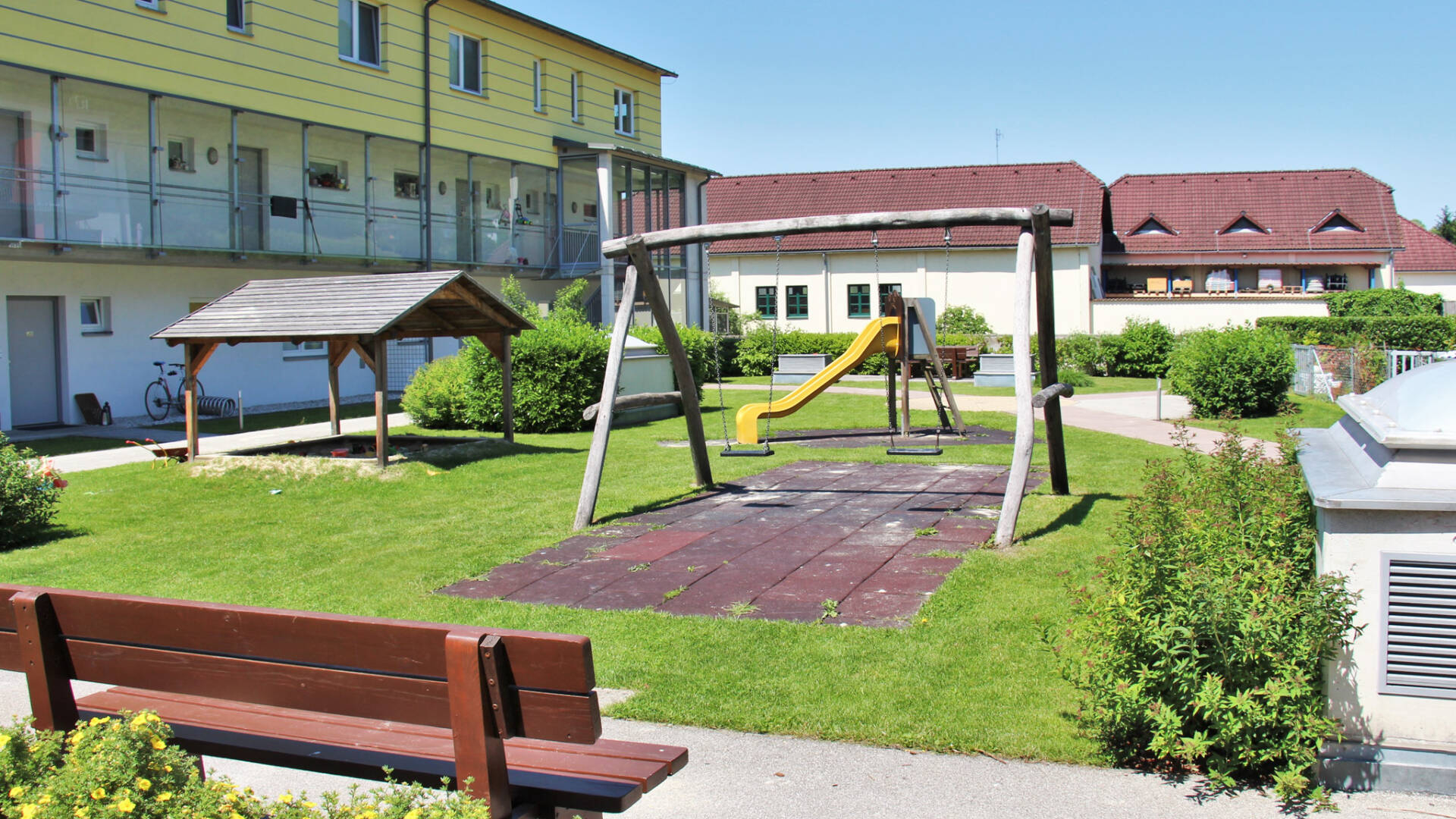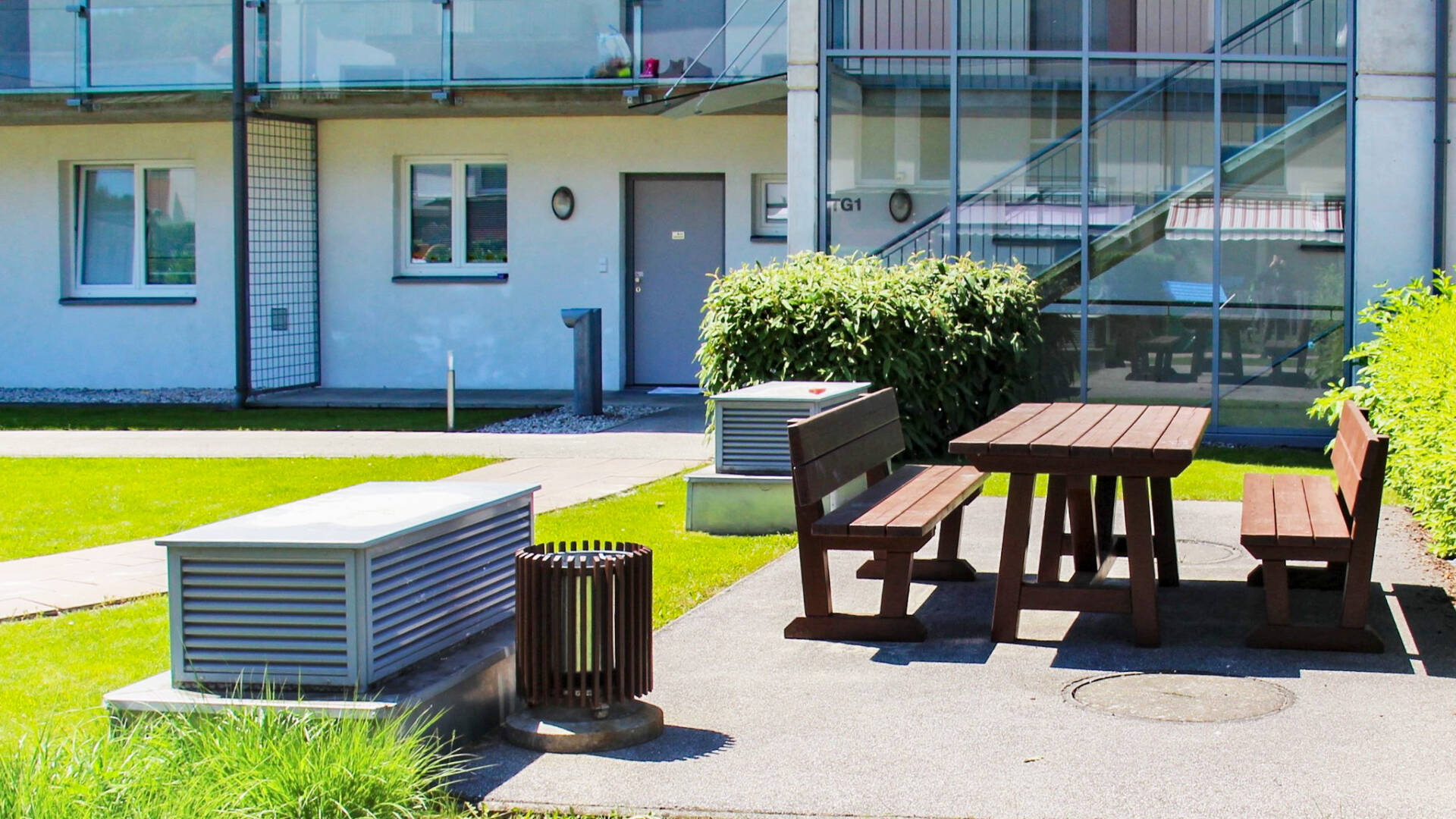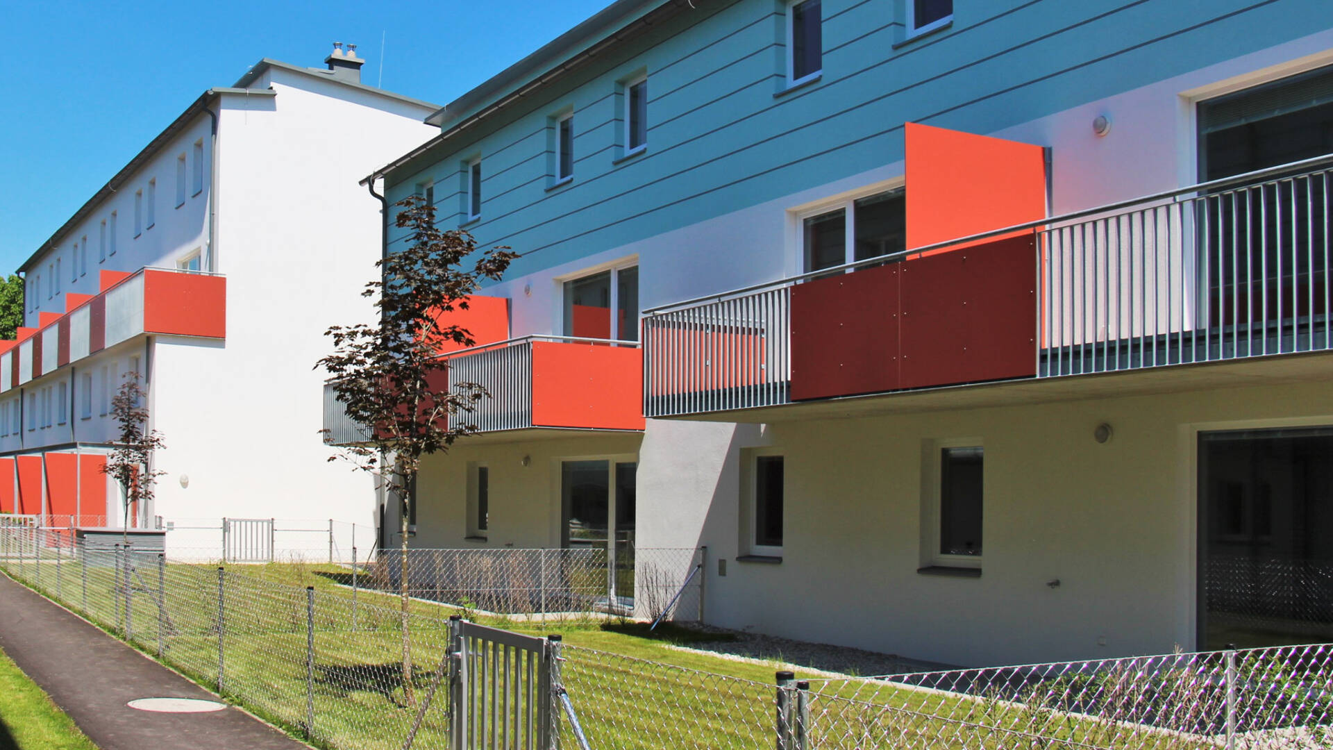 Die Wohnnutzflächen liegen zwischen 77 und 87 m² (3 bzw. 4-Zimmer-Wohnungen).Sämtliche Zugänge und öffentliche Bereiche der Wohnhausanlage werden behindertengerecht gestaltet. Die Stiegen sind vom Kellergeschoss bis zum 2. Obergeschoss über eine behindertengerechte Aufzugsanlage barrierefrei erreichbar. Der  Aufzug wurde im Stiegenhaus der Stiege 6 situiert, die Stiege 7 wird über eine Verbindungsbrücke erschlossen.Jeder Wohnung ist eine Terrasse mit Eigengarten im Erdgeschoss oder ein Balkon in den Obergeschossen zugeordnet,  sie verfügen ebenso über ein Kellerabteil (Größe ca. 4-6 m²) sowie einen PKW-Abstellplatz in der Tiefgarage. Es besteht die Möglichkeit, einen zweiten PKW-Abstellplatz anzumieten.1 Kinderwagen- und Fahrradabstellraum sowie ein Trockenraum im Kellergeschoss stehen allen Bewohnern zur Verfügung.Im Hofbereich zwischen der Stiege 1 und 5 ist ein Kinderspielplatz angeordnet, Restflächen sind begrünt und mit Sträuchern und Bäumen gärtnerisch gestaltet.Ein überdachter Müllplatz ist an der Arzbergstraße auf Höhe der Stiege 6 situiert.Die südseitigen Eigengärten im Erdgeschoss wurden zum Weg hin mit einem Maschengitterzaun eingefasst, an der Grenze zwischen den einzelnen Eigengärten werden Hecken gepflanzt. Es verfügt jeder Eigengarten über einen Wasseranschluss.